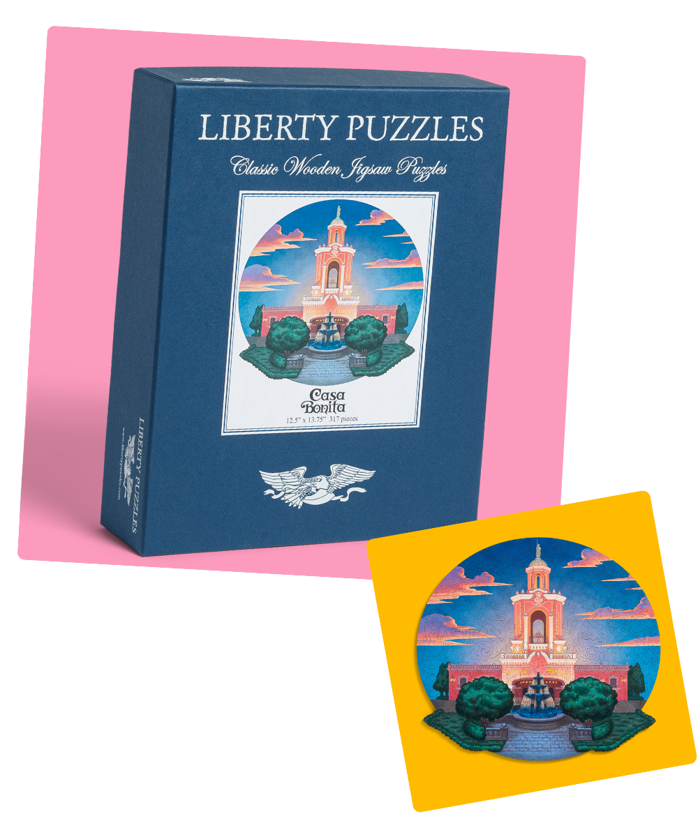 Created exclusively for Casa Bonita, this 317-piece puzzle measures 12.5"x13.75" and is adorned with a delightful array of "whimsy" pieces, showcasing iconic elements of The World's Greatest Restaurant, from our cherished sopaipillas to fearless cliff divers, and beyond. Additionally, our Tower Puzzle boasts a clever 3D Easter egg puzzle that can be assembled separately for added enjoyment.